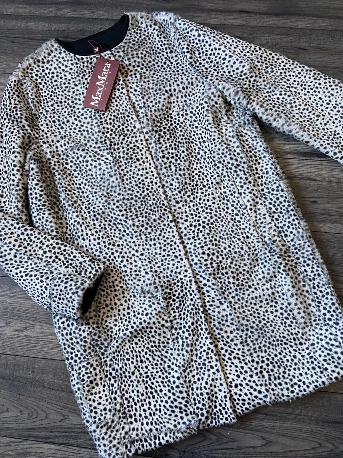 MAX MARA STUDIO IVORY & BLACK ANIMAL PRINT FAUX FUR COAT RETAIL £1430 BNWT