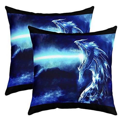 Pack of 2 Dragon Decorative Throw Pillow Covers Soft Ice Dragon Animal Print Square Cushion Case Set for Sofa Bedroom Living Room Traditional Chinese Style Pillow Cases Pillowcases 18x18 Inch