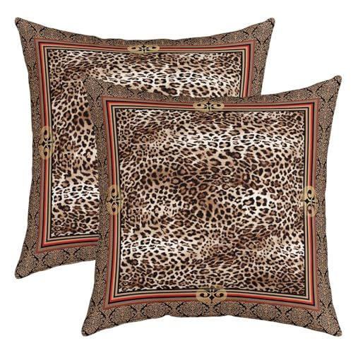 Leopard Reversible Throw Pillow Covers Safari Cheetah Print Pillow Covers Home Decor for Kids Boys Girls Wild Animal Fur Square Cushion Covers Set of 2 Wildlife Decor 16x16 Inch
