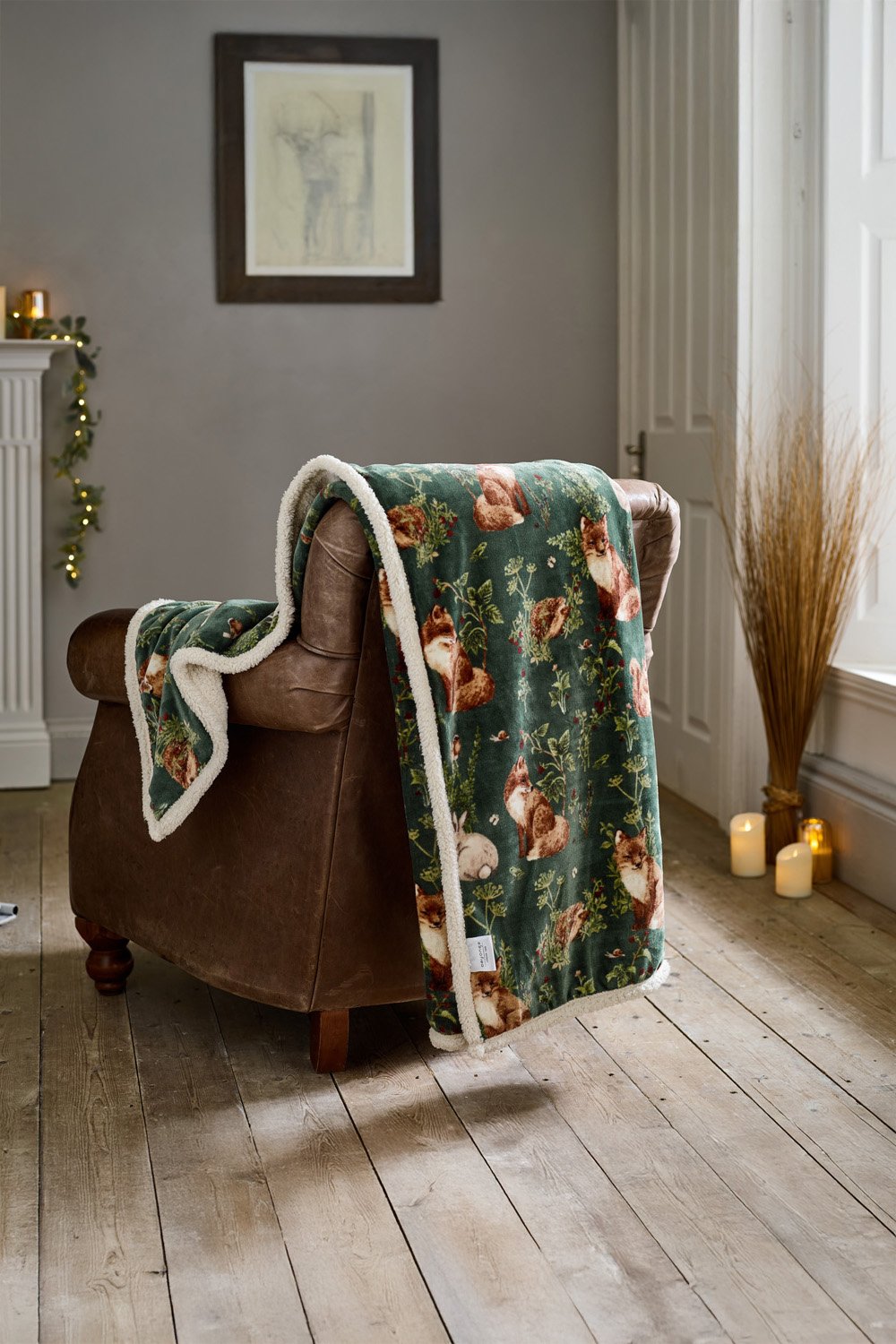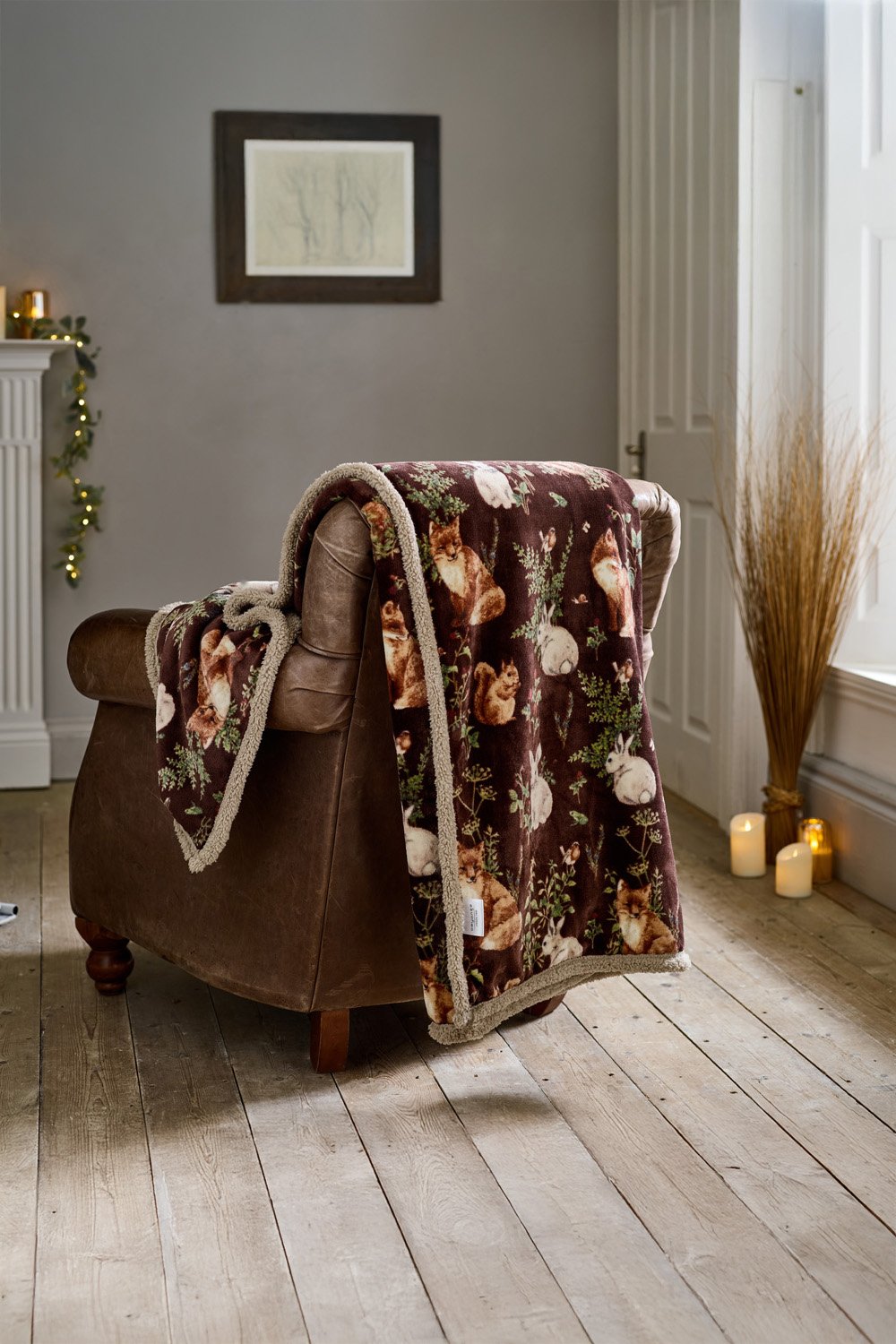 Deyongs Woodland Wildlife Throw, Forest Animal Print Flannel & Sherpa 140x180cm - Multicolour Fleece - Size 140 cm x 180 cm