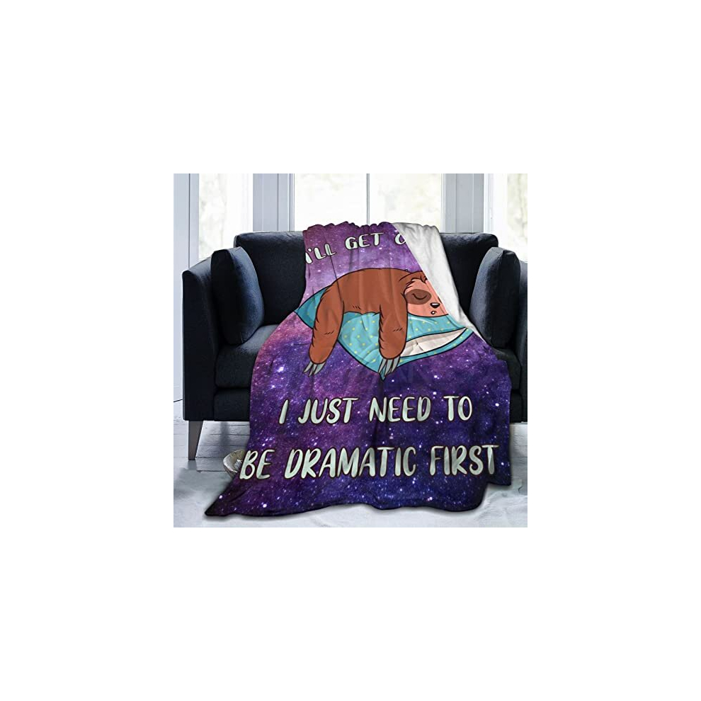 Custommixall Cute Sloth Blanket Funny Animal Print Throw Super Soft Cozy Fleece Plush Reversible Starry Space Background Bedding Blanket Size for Kids