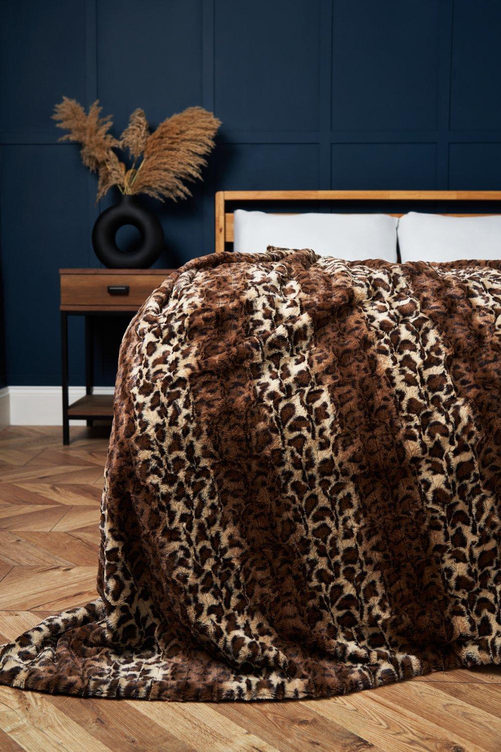 Catherine Lansfield Leopard Animal Print Throw, Natural, 130 x 170 Cm