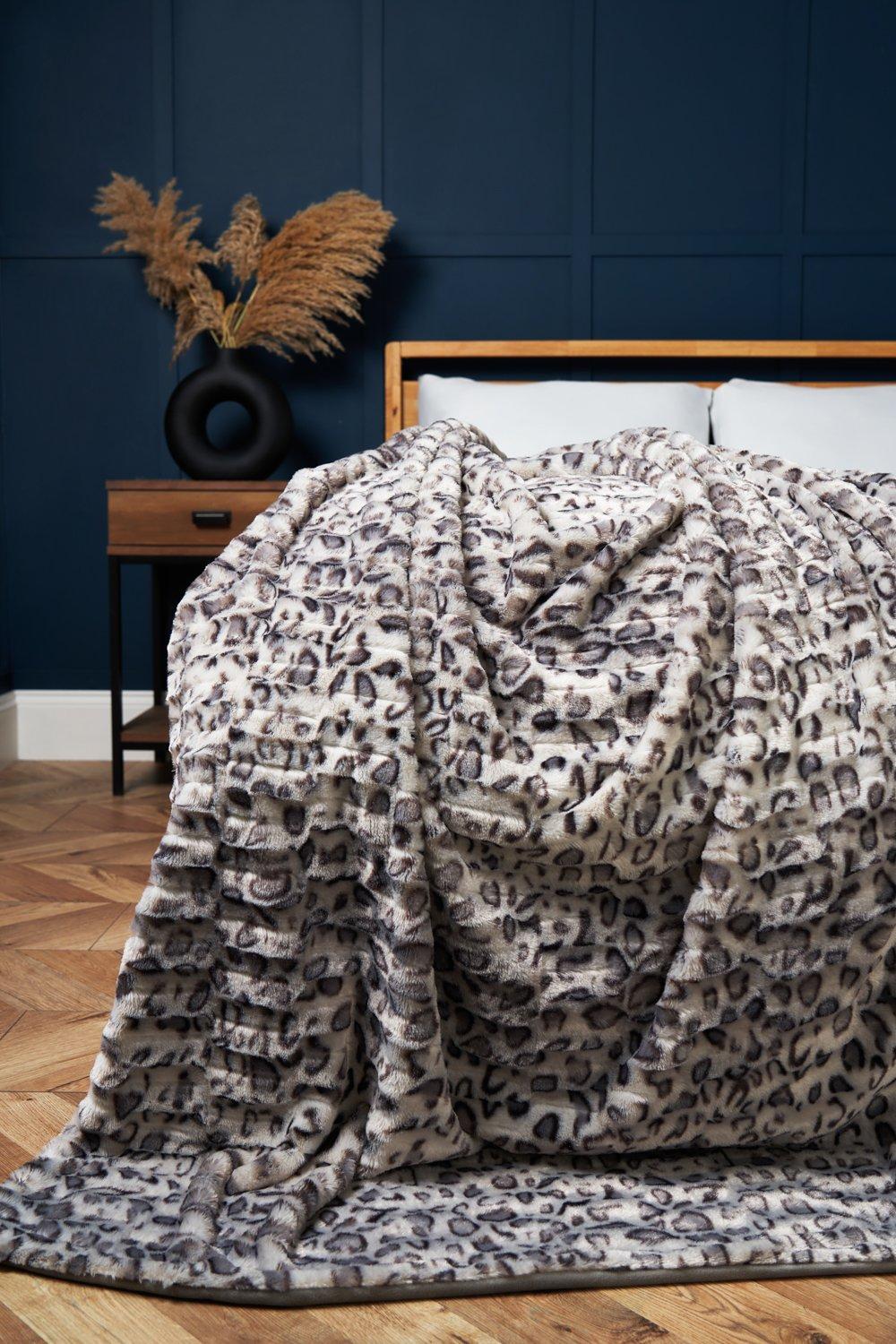 Adore Home Luxury Animal Print Mink Throw Blanket Soft & Warm Faux False Fur, Double, Elephant (150x200cm)
