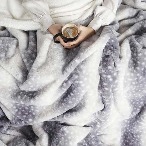 Flannel Blanket for Bed Sofa Chair, Cozy Animal Print Fleece Throw, Plush Soft Reversible 40'x60'