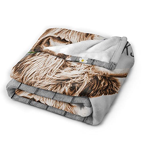 Beynepe Highland Cow Print Blanket and Throws Cute Rustic Farm Animal Flowers Throw Blankets Soft Cozy Fleece Plush Warm Flannel Bedding for