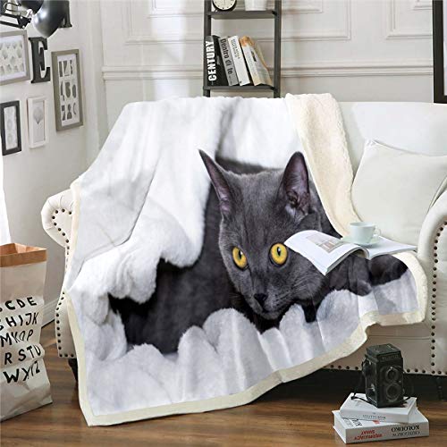 Cat Cute Kitten Print Fleece Throw Blanket for Sofa Bed Couch Adult 3D Animal Theme Cat Lover's Gift Plush Blanket Room Decor Baby 30"x40"