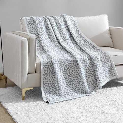 Juicy Couture Leopard Jacquard Throw Blanket - Grey Animal Print 50"X70" Cozy Plush Blanket