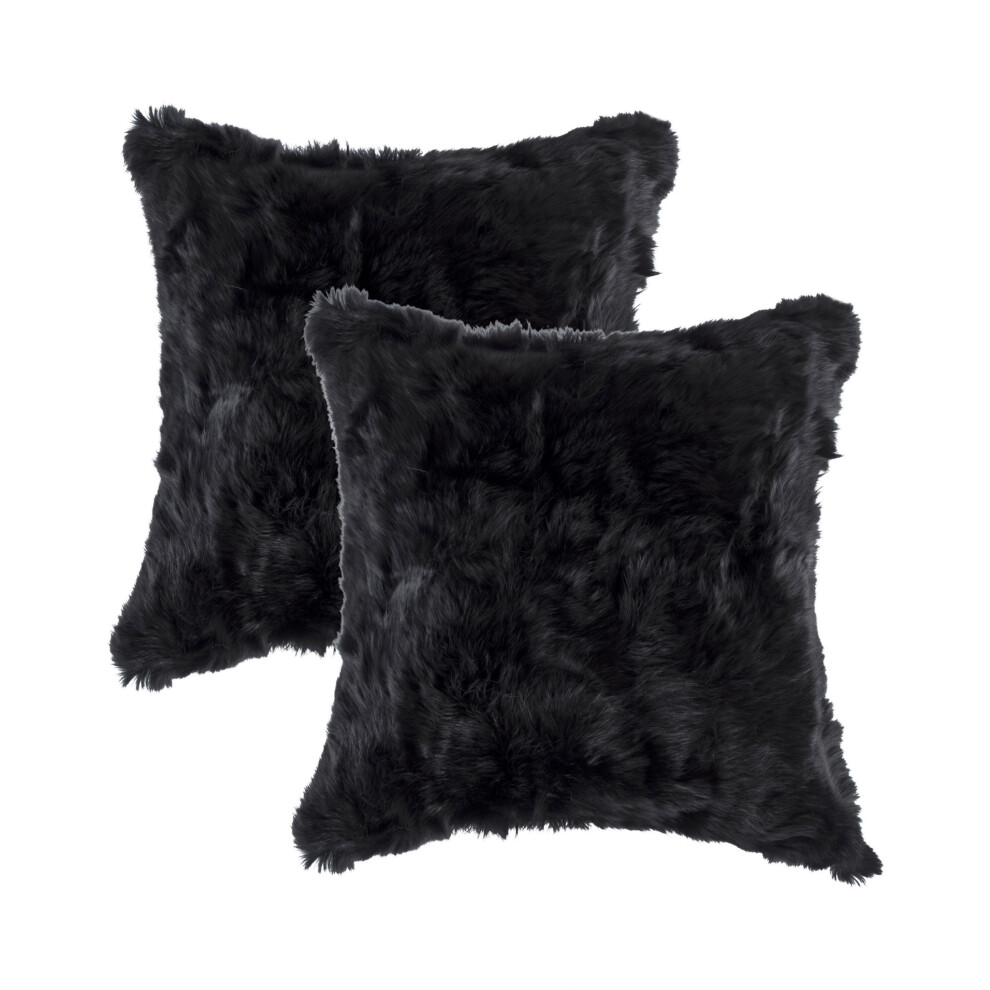 Set Of Two 18"" X 18"" Black Rabbit Natural Fur Animal Print Throw Pillows