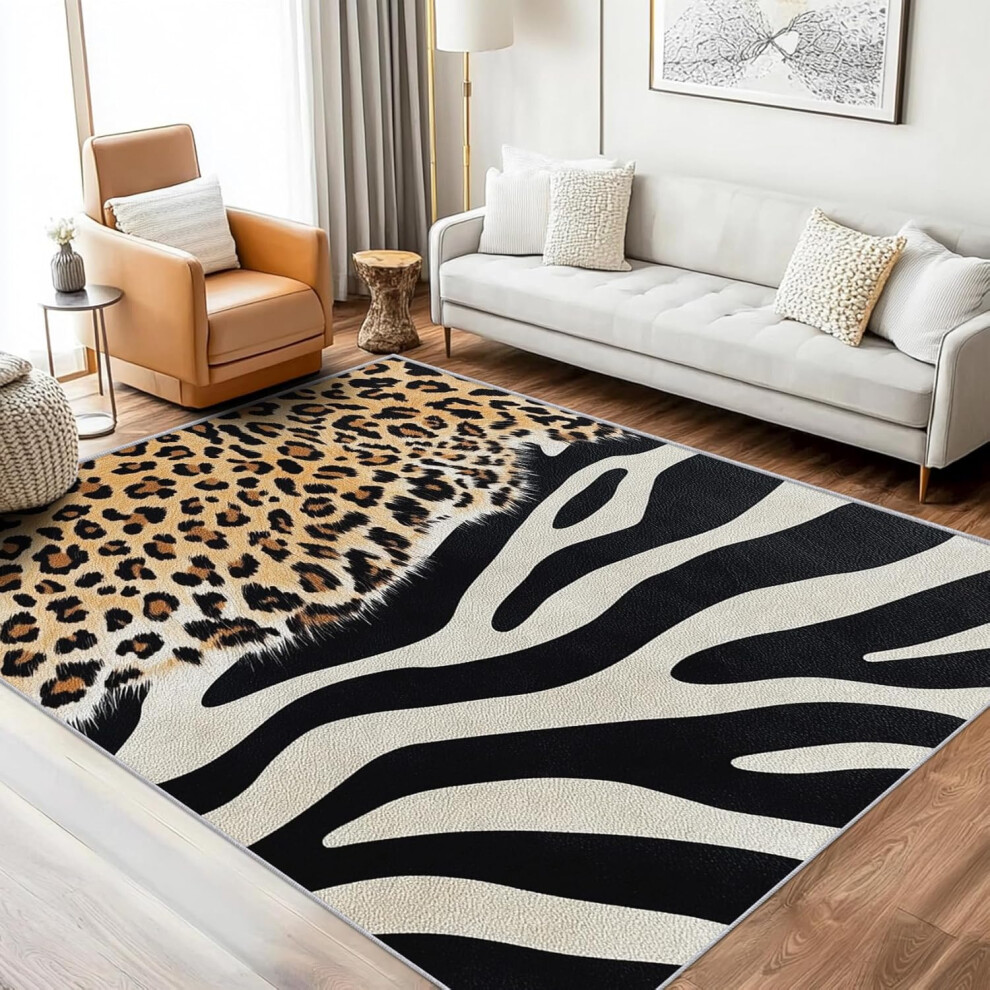 Leopard Print Animal Skin Throw Rug 2x3ft Washable Non-Slip Zebra Cheetah