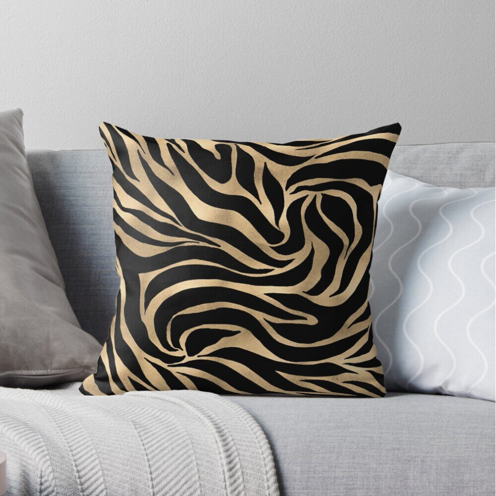 Pillow Cases Elegant Metallic Gold Zebra Black Animal Print Throw Cover 12x12 16x16 18x18 inch 7 Size