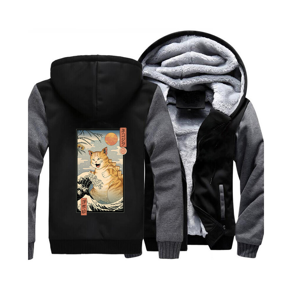 Cat Japanese Anime Jackets For Men Clothing Thicken Warm Camouflage Jacket Fleece Hooded Coat Oversized Hoodie Sweatshirt Zipper