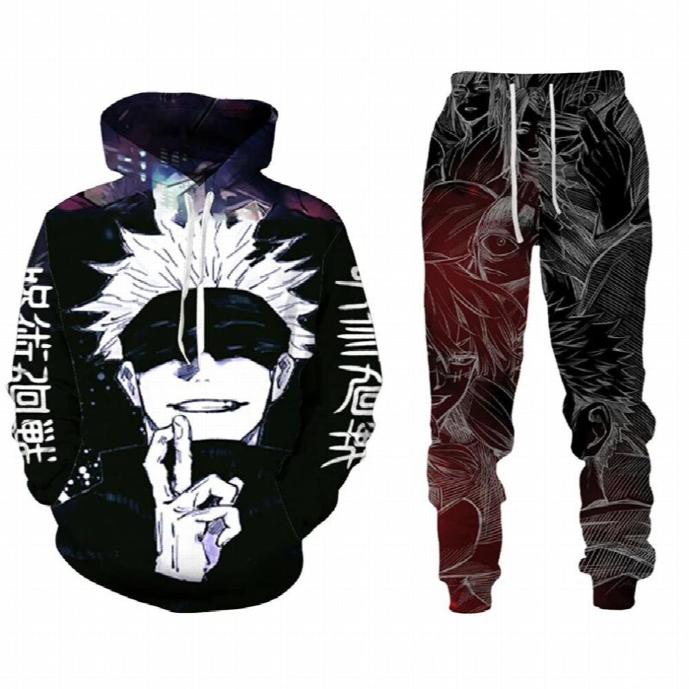 Japanese Anime Tokyo Ghoul Hoodie Pants Suit Autumn and Winter Casual Hoodie Jujutsu Kaisen Cosplay Sweashirt Mens Clothing