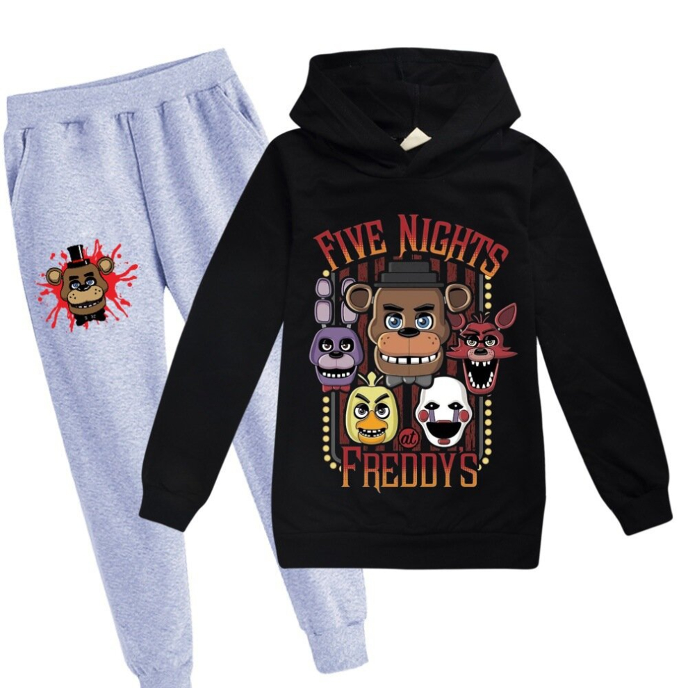 (Black Top + Grey Pants, 3-4Y) FNAF anime hoodie + trousers autumn and winter boys and girls fashion casual children's clothing
