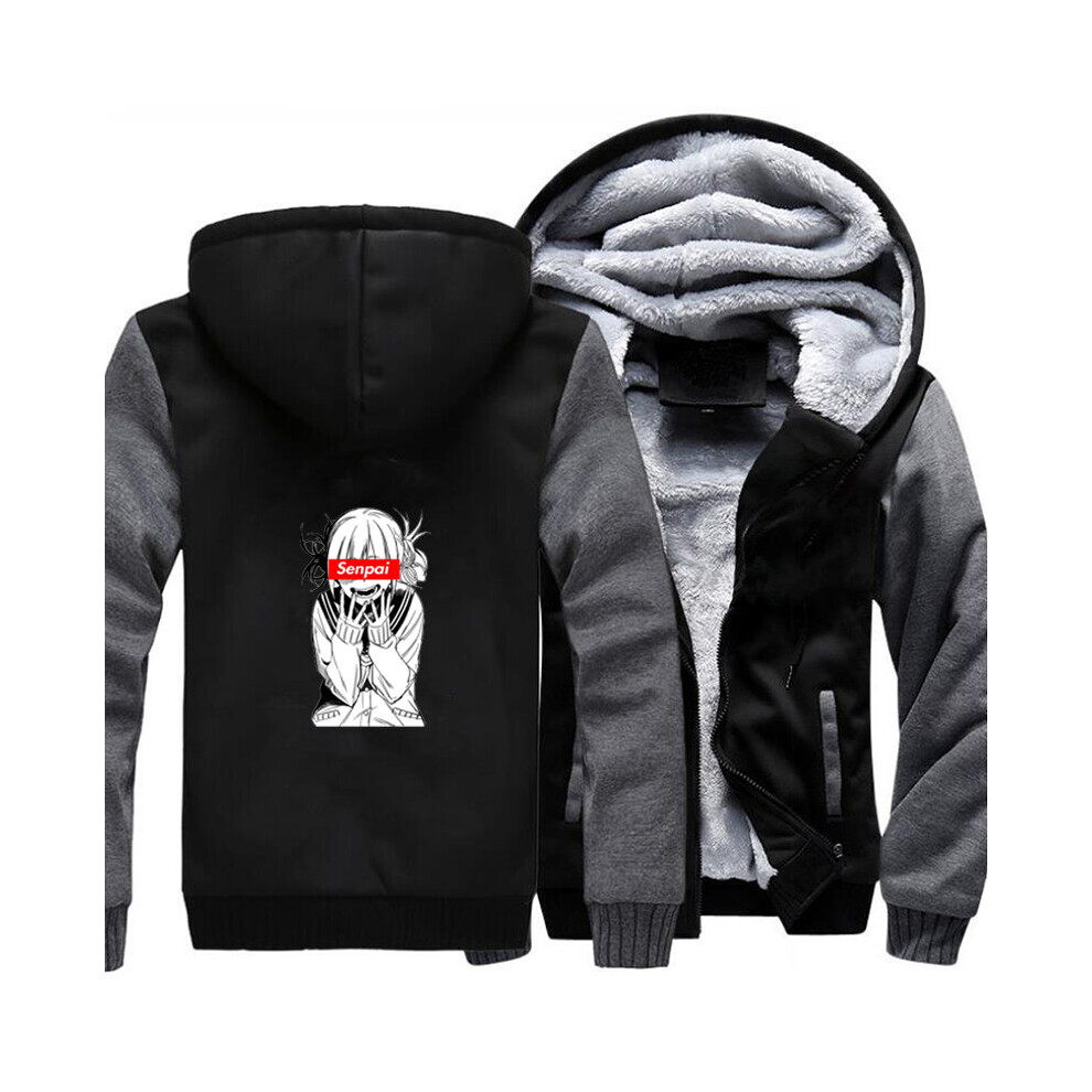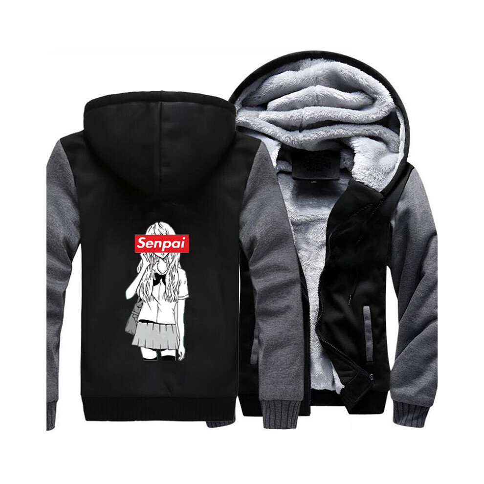 Senpai Japanese Anime Harajuku Jackets For Men Winter Warm Fleece Jacket Zipper Hoodie Thicken Hoodies Sweatshirts Coat Clothing