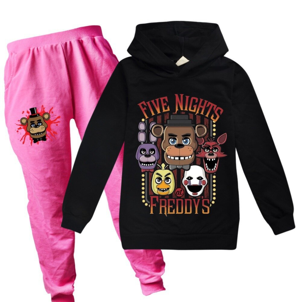 (Black Top + Pink Pants, 5-6Y) FNAF anime hoodie + trousers autumn and winter boys and girls fashion casual children's clothing