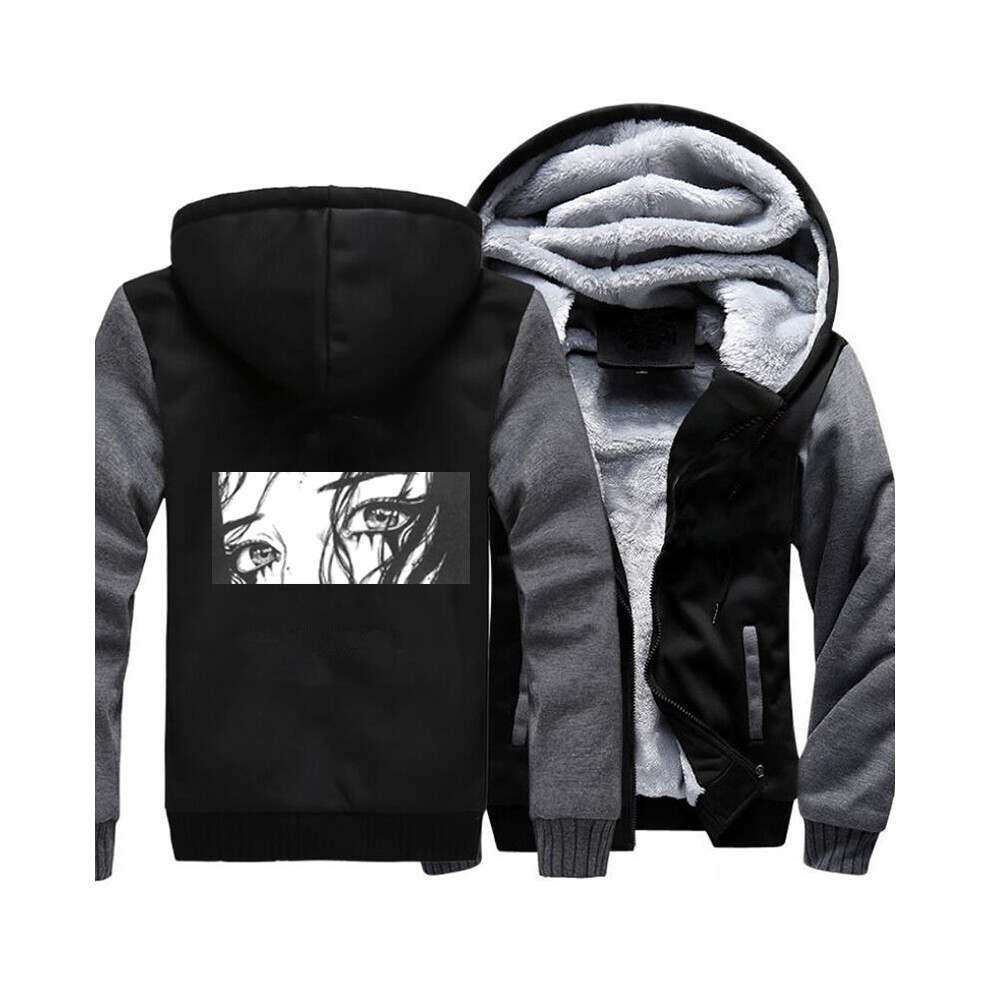 Japanese Anime Eye Harajuku Jackets For Men Winter Warm Fleece Jacket Zipper Hoodie Thicken Hoodies Sweatshirts Coat Clothing