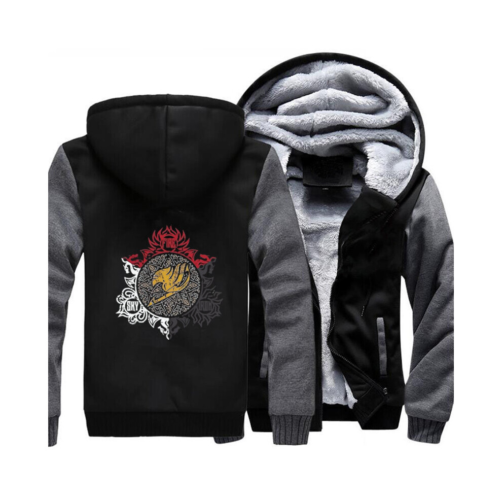 FAIRY TAIL Japanese Anime Harajuku Jackets For Men Hoodie Thicken Hoodies Winter Warm Fleece Jacket Zipper Sweatshirts Clothing