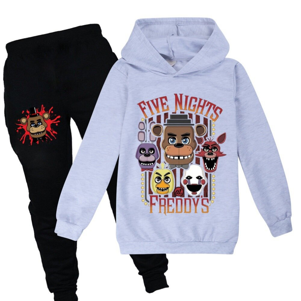 (Grey Top + Black Pants, 13-14Y) FNAF anime hoodie + trousers autumn and winter boys and girls fashion casual children's clothing