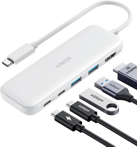 Anker USB C Hub, 5-in-1 USBC to HDMI Splitter with 4K Display, 1 x Powered USB-C 5Gbps & 2×Powered USB-A 3.0 5Gbps Data Ports for MacBook Pro, MacBook Air, Dell and More (White)