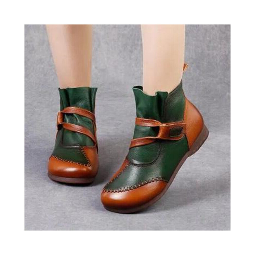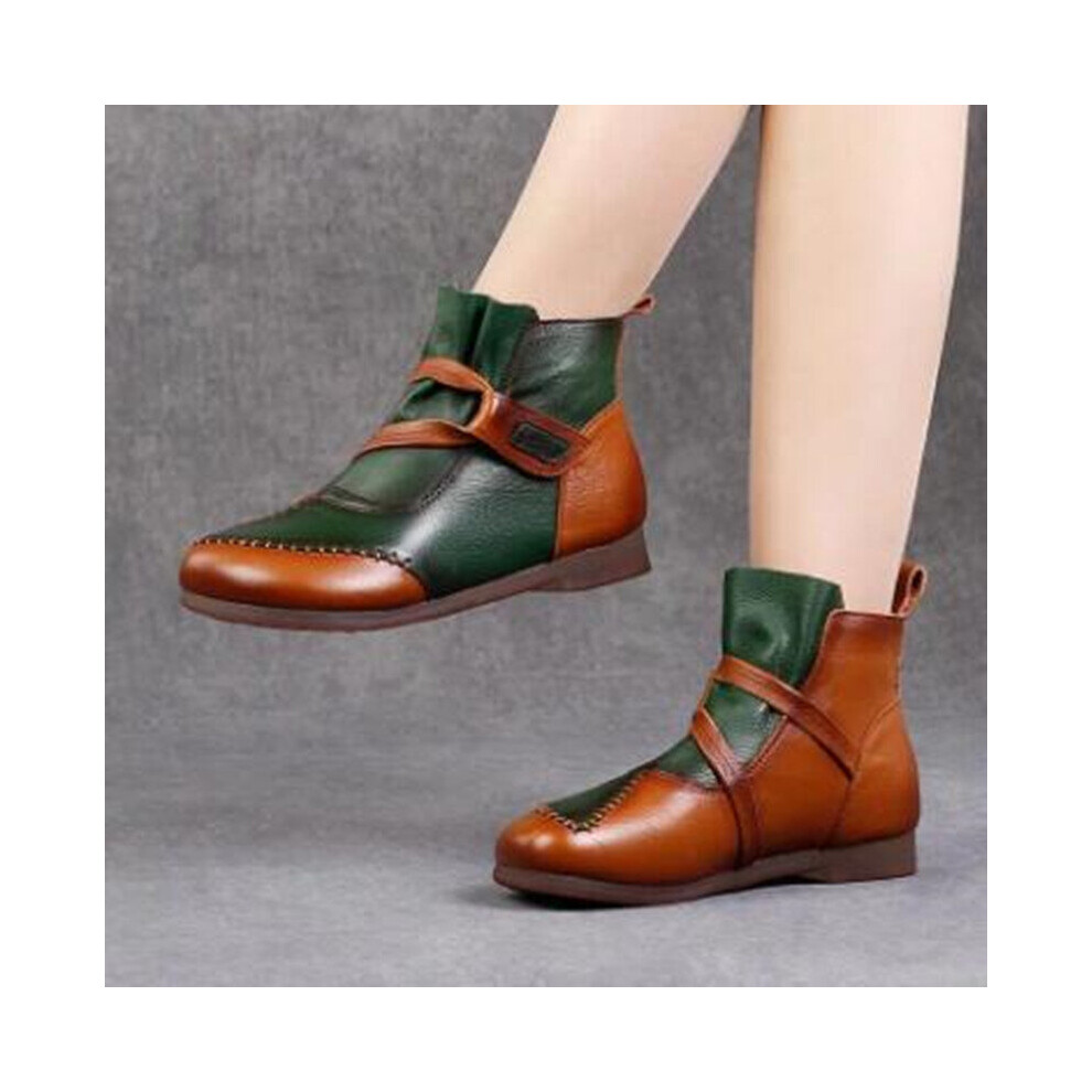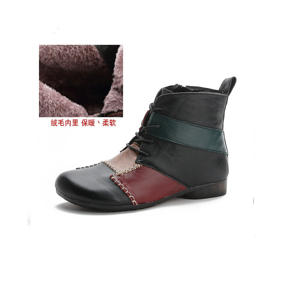 Xiuteng Autumn Winter Leather Retro Round Toe lacing Ankle Boots Low Heel All Match Women Shoes Size 35-41