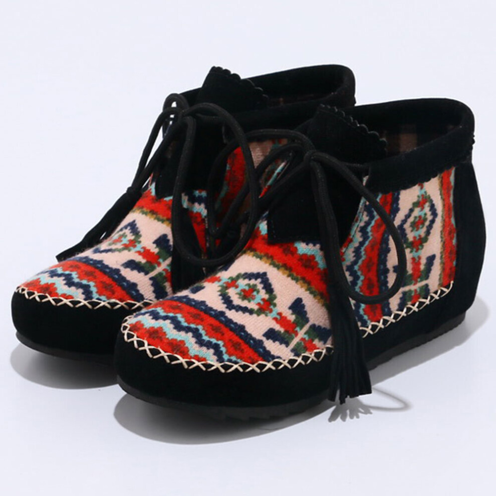 Lloprost ke Spring Autumn Large Size 34-43 Embroider Flock Lace Up Ankle Boots Woman Sewing Low Heel Women Shoes D741
