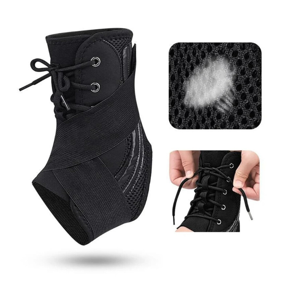 Ankle Brace for Women & Men - Ankle Support for Sprained Ankle, Adjustable Lace Up Ankle Brace for Running, Basketball, Volleyball (Black, Large 1)
