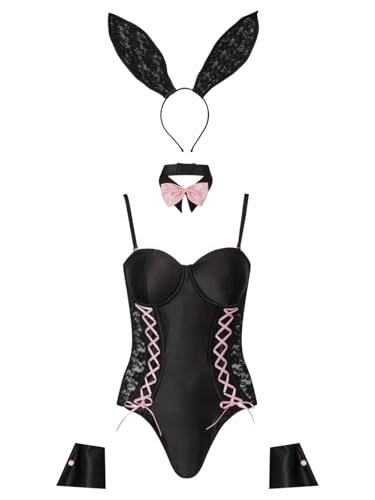 Ann Summers Halloween Boudoir Bunny Costume Outfit with Pink Ribbon Women's Halloween Costume with Bunny Ears and Tail - Easter Outfit