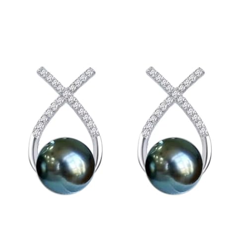 NONNYLLEI Anniversary Birthday Gift for Women Wife-Tahitian Black Pearl Earrings 8-9mm-Mothers Day Gifts for Mom Valentines Day Gifts for Her Christmas Wedding Jewelry