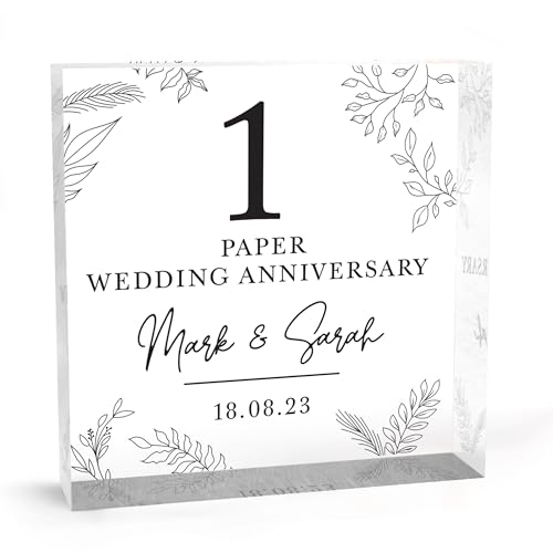 Beecreative Personalised 1st Anniversary Gift For Husband Wife Couple - Paper Wedding Anniversary Gift For Him Her - One Year Married Gift - With Grey Bag