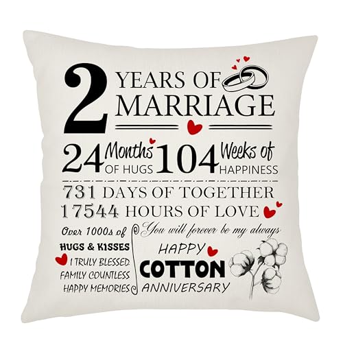 2nd Anniversary Cushion Cover Gift for Wife Husband Pillow Case 2nd Weddding Anniversary Keepsake Present 2 Years of Marriage Gift Cotton anniversary Cushion Cover 45x45cm (2 Years of Marriage)