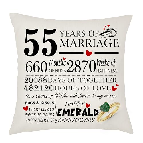 55th Anniversary Cushion Cover Gift for Wife & Husband - Emerald Anniversary Keepsake Present - 45x45cm
