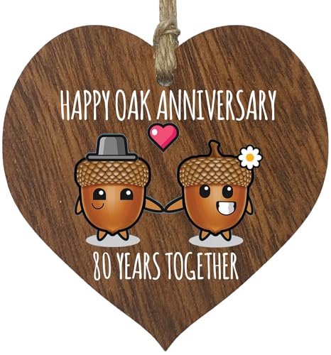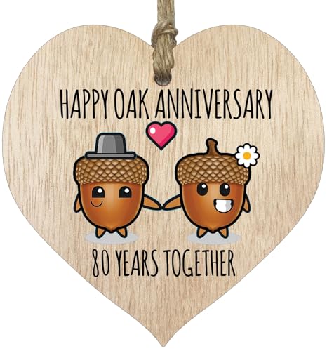 80th Wedding Anniversary Plaque Gift for Husband Wife - 80 Years Together - Happy Oak Anniversary Wooden Heart for Women Men Partner, Light Wood Sign Keepsake Gifts