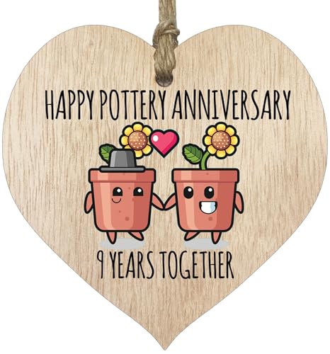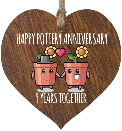 9th Wedding Anniversary Plaque Gift for Husband Wife - 9 Years Together - Happy Willow Anniversary Wooden Heart for Women Men Partner, Light Wood Sign Keepsake Gifts