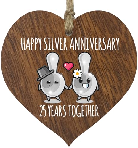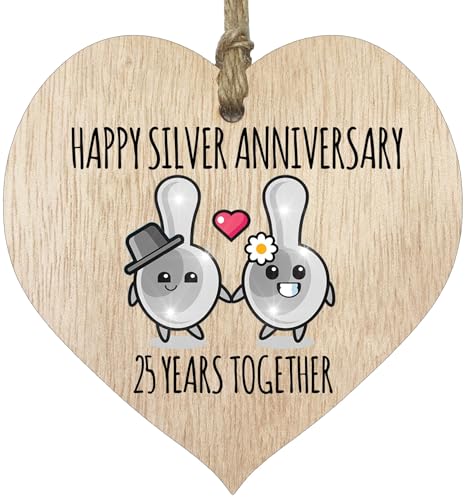 25th Wedding Anniversary Plaque Gift for Husband Wife - 25 Years Together - Happy Silver Anniversary Wooden Heart for Women Men Partner, Light Wood Sign Keepsake Gifts