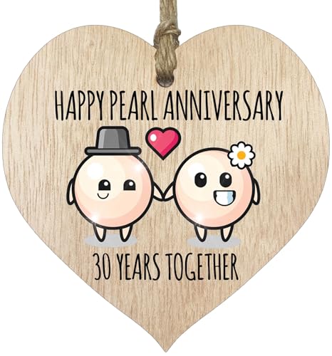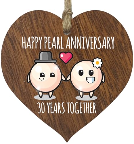 30th Wedding Anniversary Plaque Gift for Husband Wife - 30 Years Together - Happy Pearl Anniversary Wooden Heart for Women Men Partner, Light Wood Sign Keepsake Gifts