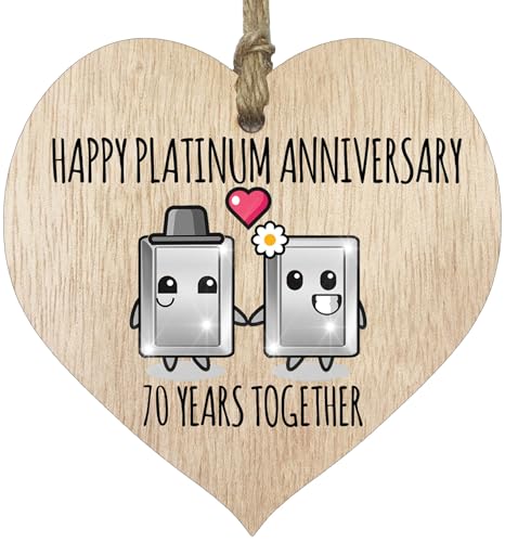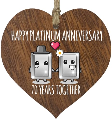 70th Wedding Anniversary Plaque Gift for Husband Wife - 70 Years Together - Happy Platinum Anniversary Wooden Heart for Women Men Partner, Light Wood Sign Keepsake Gifts