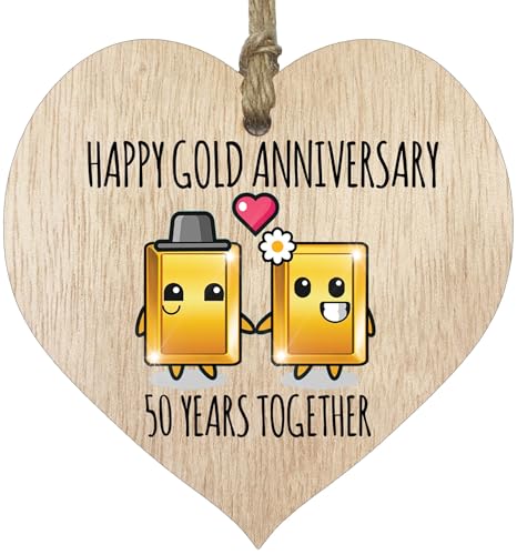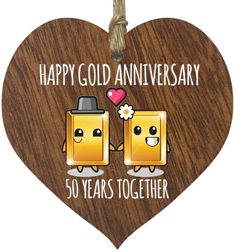 50th Wedding Anniversary Plaque Gift for Husband Wife - 50 Years Together - Happy Gold Anniversary Wooden Heart for Women Men Partner, Light Wood Sign Keepsake Gifts