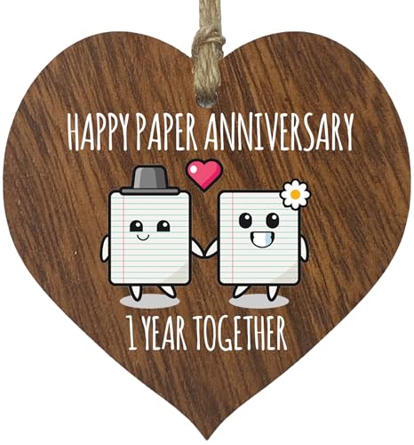 1st Wedding Anniversary Plaque Gift for Husband Wife - 1 Year Together - Happy Paper Anniversary Wooden Heart for Women Men Partner, Light Wood Sign Keepsake Gifts