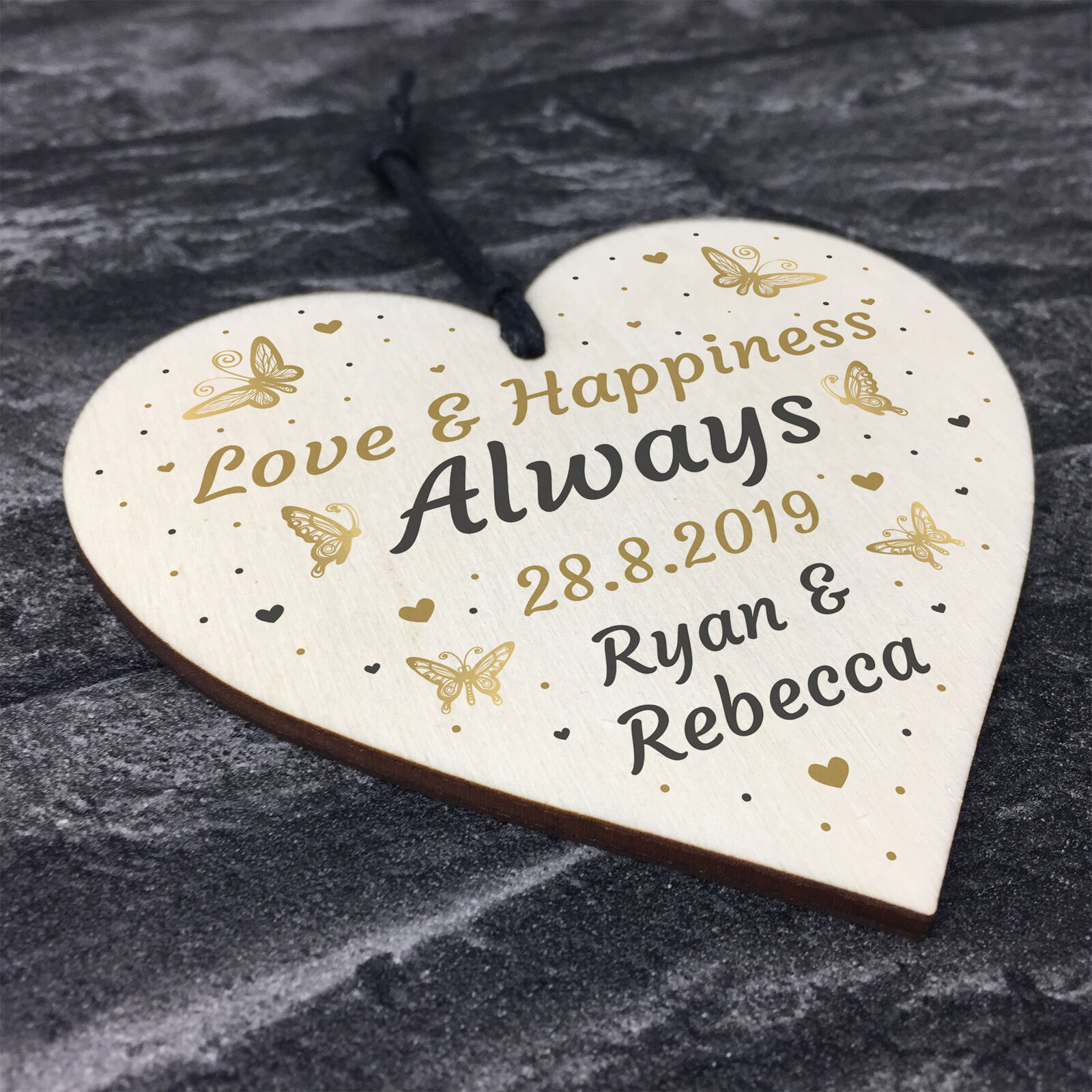 Personalised Anniversary Gift For Husband Wife Boy Girl Friend Wooden Heart