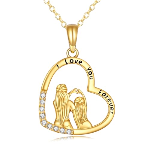 KECHO 14ct Gold Mum Necklace for Women Mother Daughter Love Heart Pendant Necklace Birthday Anniversary Jewellery Gift for Mum Wife Grandma Daughter