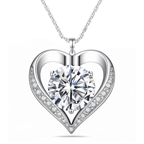 RIGHTPARTS Moissanite Necklace Heart for Women,2 Carat 925 Heart Necklace Sterling Silver Jewellery,Hypoallergenic Anniversary Birthday Gift for Girlfriend,Wife & Mum