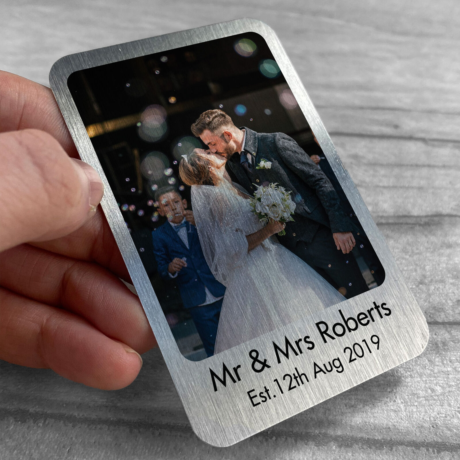 Personalised Anniversary Gift For Husband Wife Metal Wallet Card Insert Keepsake