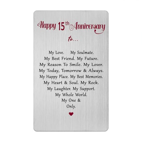 15th Anniversary Card for Women Men Him Her- 15 Fifteen Year Wedding Anniversary Keepsake Gift for Husband Wife