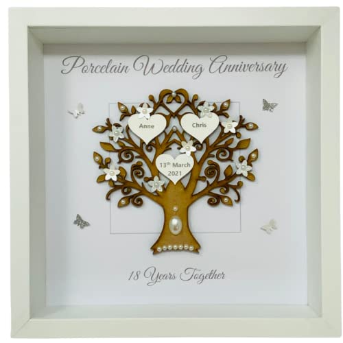 18th Anniversary Gift for Wife Husband Couple, Personalised Handmade Frame, Porcelain Wedding Anniversary Gifts for Her Him Girlfriend Boyfriend 18 Years Together - Various Designs (Message)