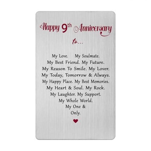 9 Year Anniversary Card for Men Women Him Her- Romantic 9th Wedding Anniversary Keepsake Gift for Husband Wife