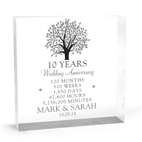 Beecreative Personalised 10th Tin Wedding Anniversary Gift For Husband Wife Couples - 10th Anniversary Gift For Him Her - 10 Ten Years Anniversary Gift - With Grey Bag