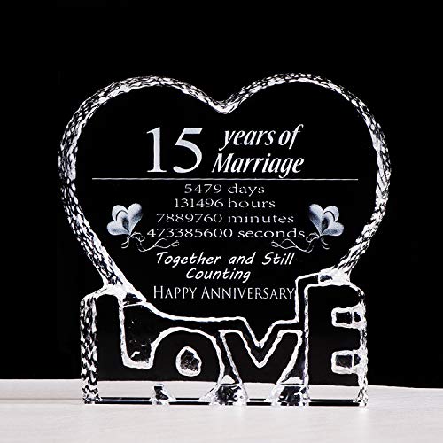 Movdyka 15th Wedding Anniversary Crystal Gift for Her Wife Him Couple 15 Year Marriage Crystal Love Heart Paperweight Keepsake