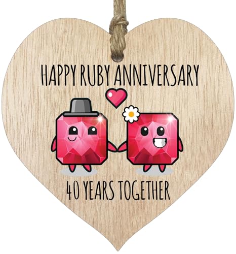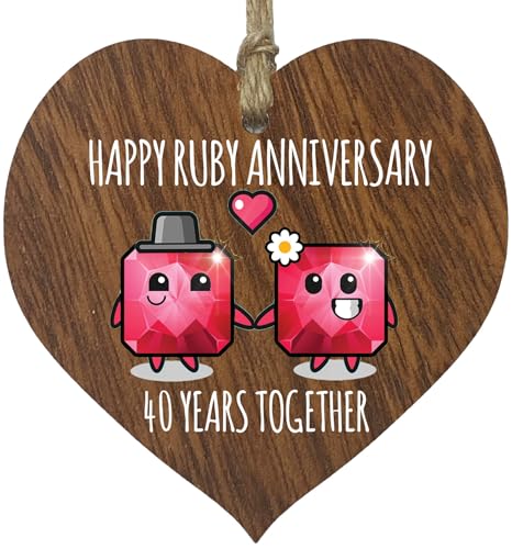 40th Wedding Anniversary Plaque Gift for Husband Wife - 40 Years Together - Happy Ruby Anniversary Wooden Heart for Women Men Partner, Light Wood Sign Keepsake Gifts