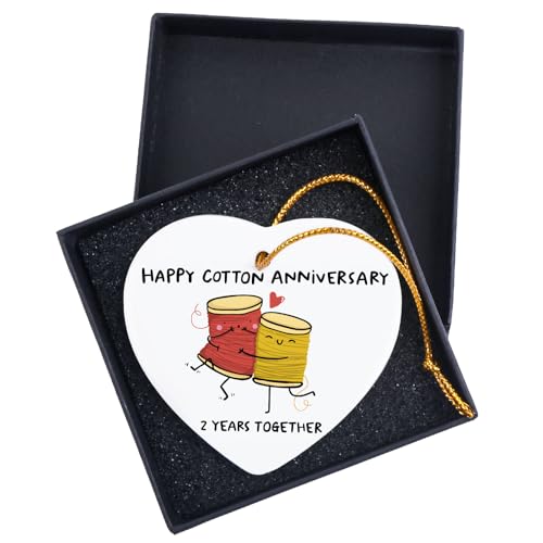 2nd Wedding Anniversary Plaque Gift for Husband Wife, 2 Years Together - Happy Cotton Anniversary Romantic Ceramic Heart Gift for Women Men Partner, Ceramic Sign Keepsake Gifts