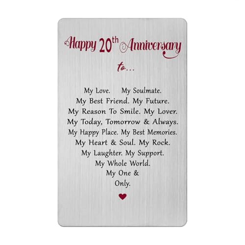 20th Anniversary Card for Women Men Him Her- 20 Twenty Year Wedding Anniversary Keepsake Gift for Husband Wife